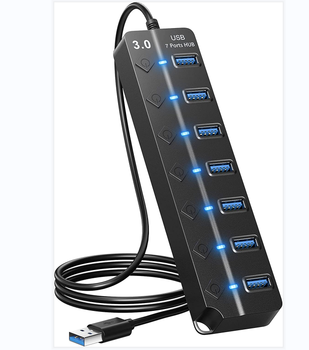 High Speed Individual On/Off Switches and Lights Multi Port USB Splitter 7 Port USB 3.0 Hub