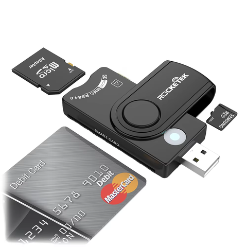 रॉकेटेक स्मार्ट एमवी कार्ड रीडर यूएसबी आईडी-चिप प्रौद्योगिकी आईएसओ 7816 संगत सिम/एस कार्ड रीडर बाहरी बैंक/बजट/क्रेडिट के लिए बाहरी